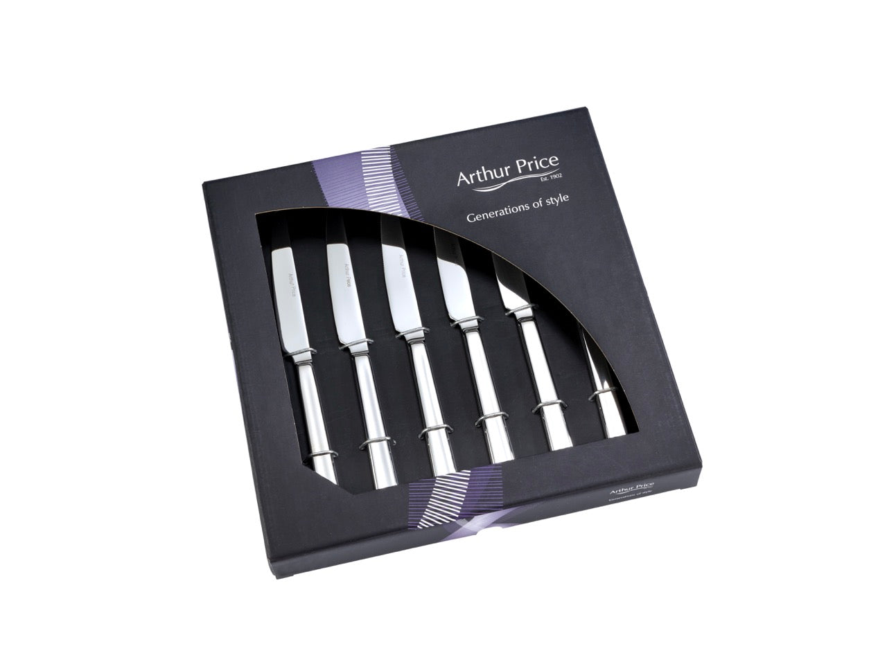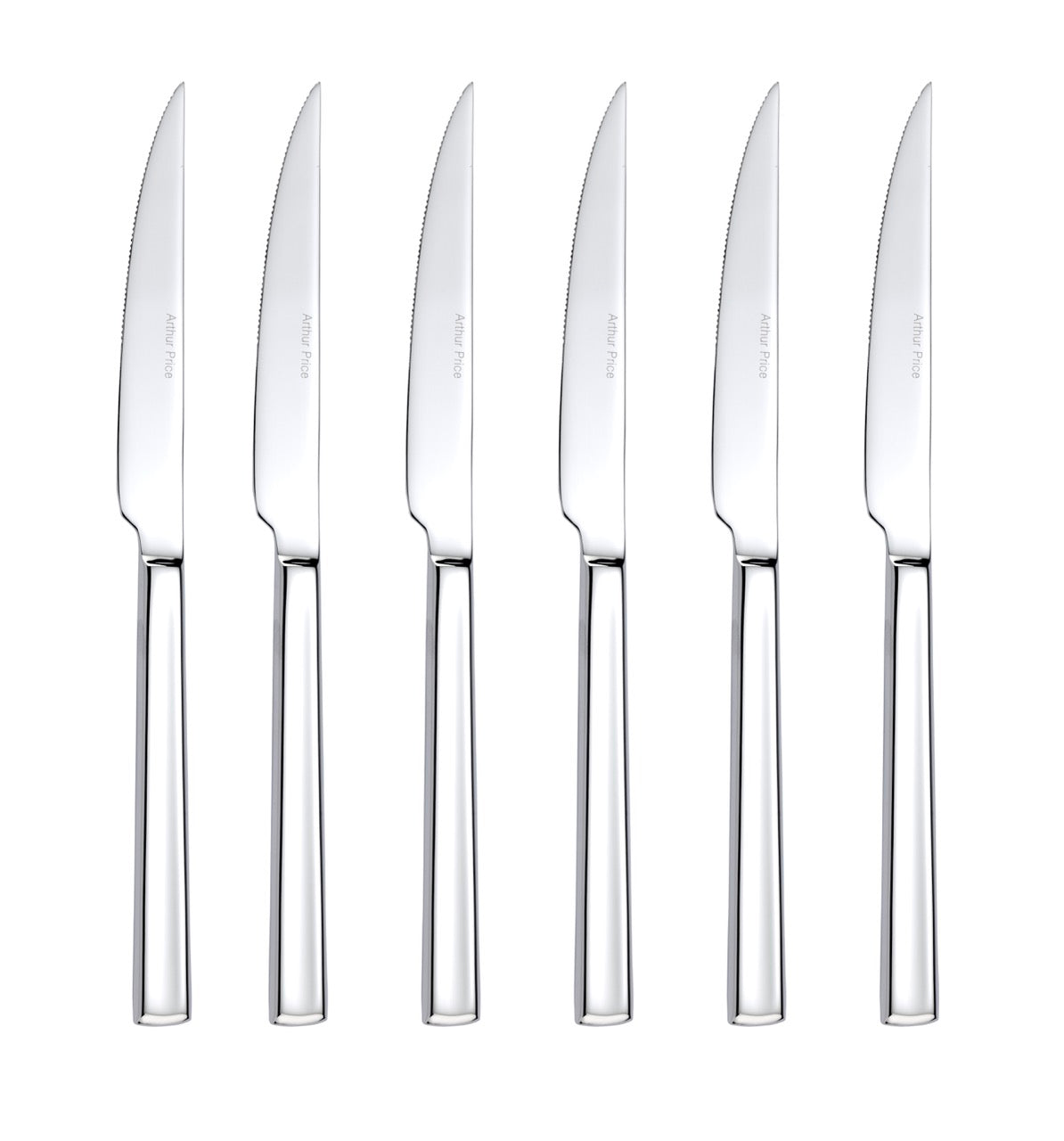 Ensemble de 6 couteaux à steak Everyday Classic Horizon, présenté dans un emballage Arthur Price. Acier inoxydable 18/10, garantie 50 ans et lavable au lave-vaisselle.